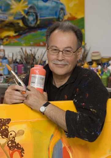 Ad Verstijnen is beeldend kunstenaar, naast schilderijen maakt hij grafiek en ruimtelijk werk. Zijn beeldtaal ademt een eigen frisse kleurrijke eenvoud. Ad omschrijft zijn werk met de volgende woorden: Altijd de andere kant op. Slingeren vol plezier, heen en weer tussen fantasie en werkelijkheid. Het optimisme schuifelt mij naar voren in een avontuur van creativiteit, waarbij verworvenheden zoveel mogelijk vermeden worden. Meestal ga ik uit van het niets, graaf in mijn verleden, dan staat een kindertekening oldtimer of fiets centraal en probeer met het verwerken vooral de aandacht van mij zelf te trekken.